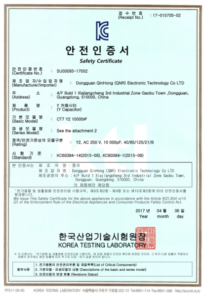 您当前的位置:首页 » 资质证书 » Y电容 » KC  » Y电容-KC-Y1证书